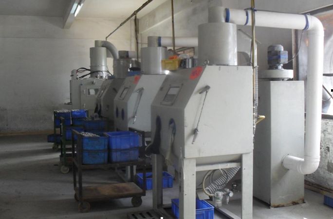 手動底壓噴砂機,噴氧化鋁作業,目前有3台手動噴砂機。
